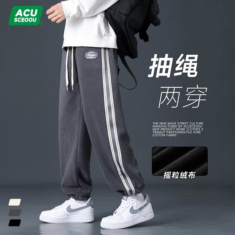 スポーツストレートパンツフリースズボン男性秋冬新商品ベルベットアメリカストライプ682