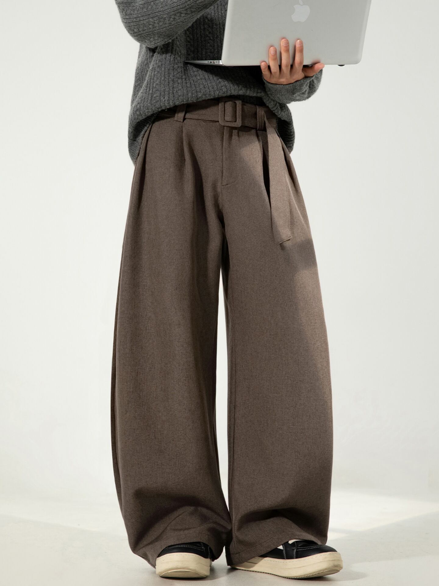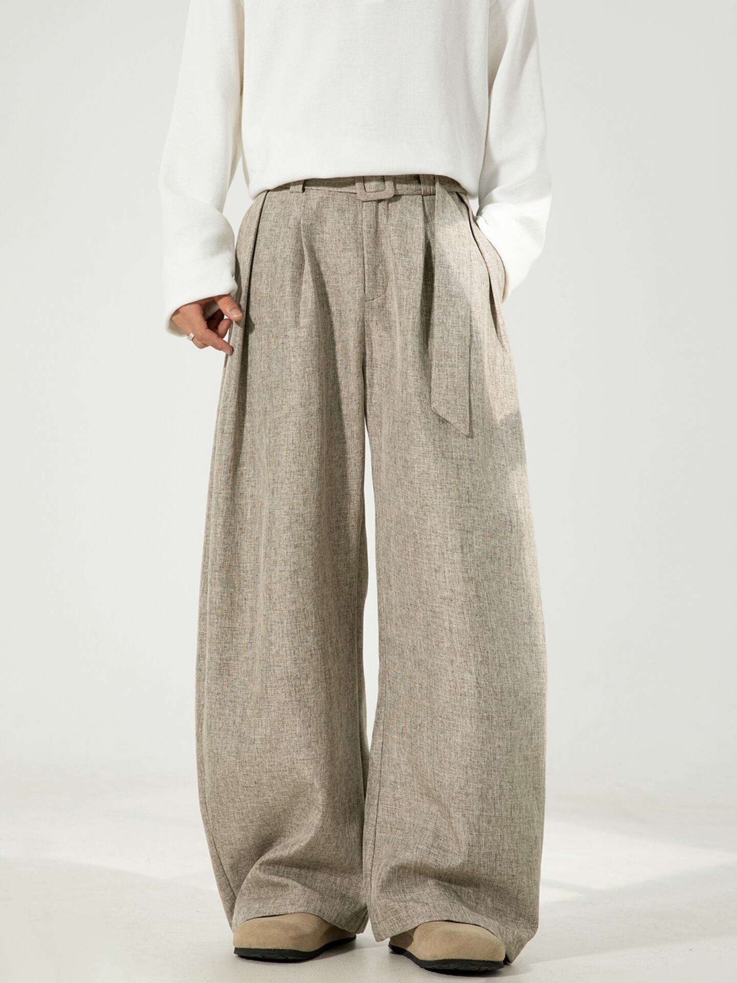 カジュアルパンツ立体プリーツドレープスモールソードパンツメンズ秋スタイルルーズストレートパンツオールドマネースタイルベルト 747