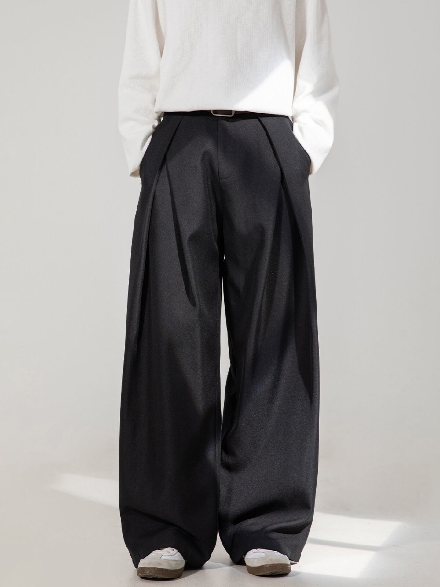 カジュアルパンツクロスプリーツデザインドレープ、メンズ、秋スタイル、テクスチャードルーズストレートパンツ、トレンディレトロパンツ 796