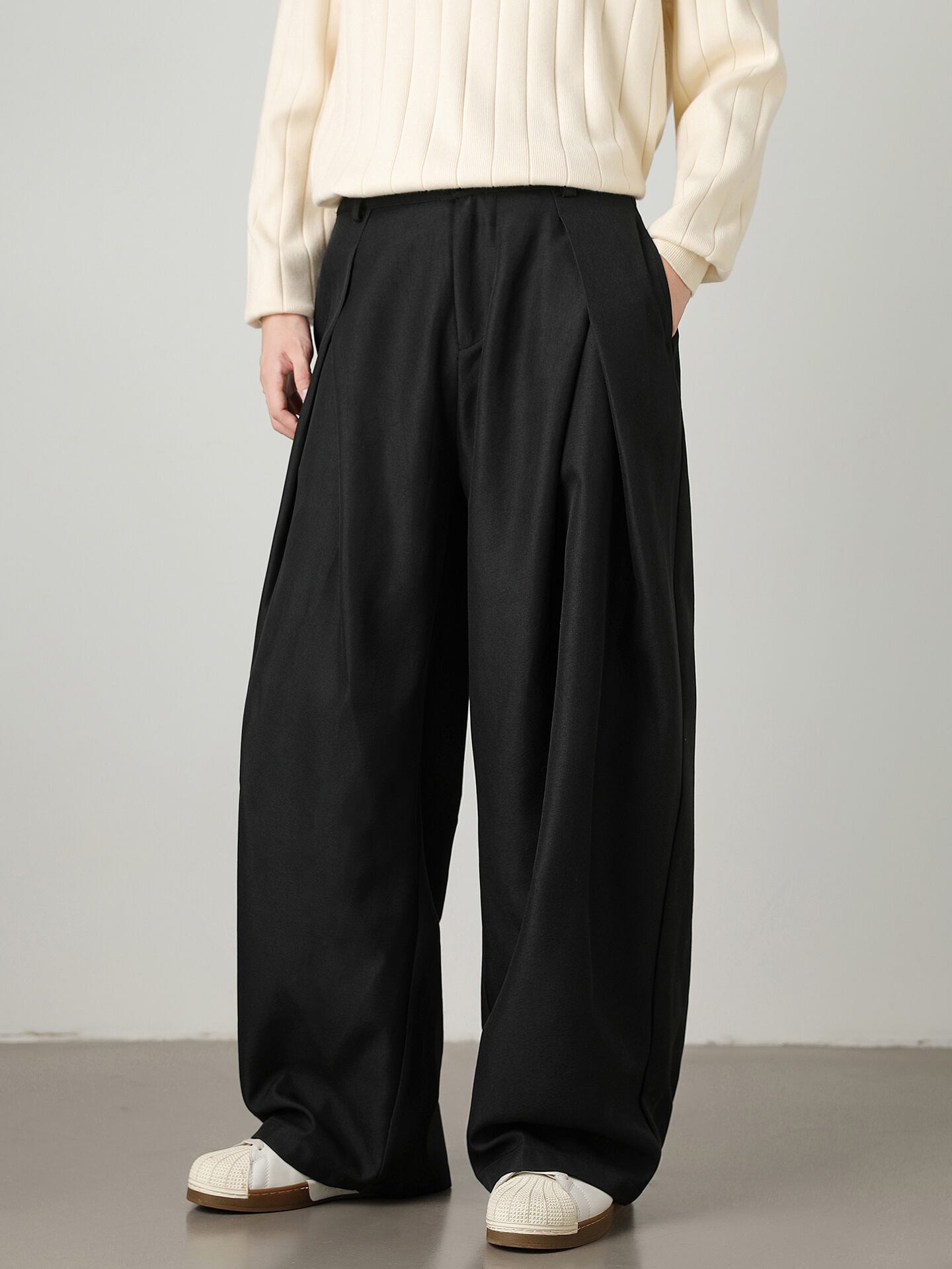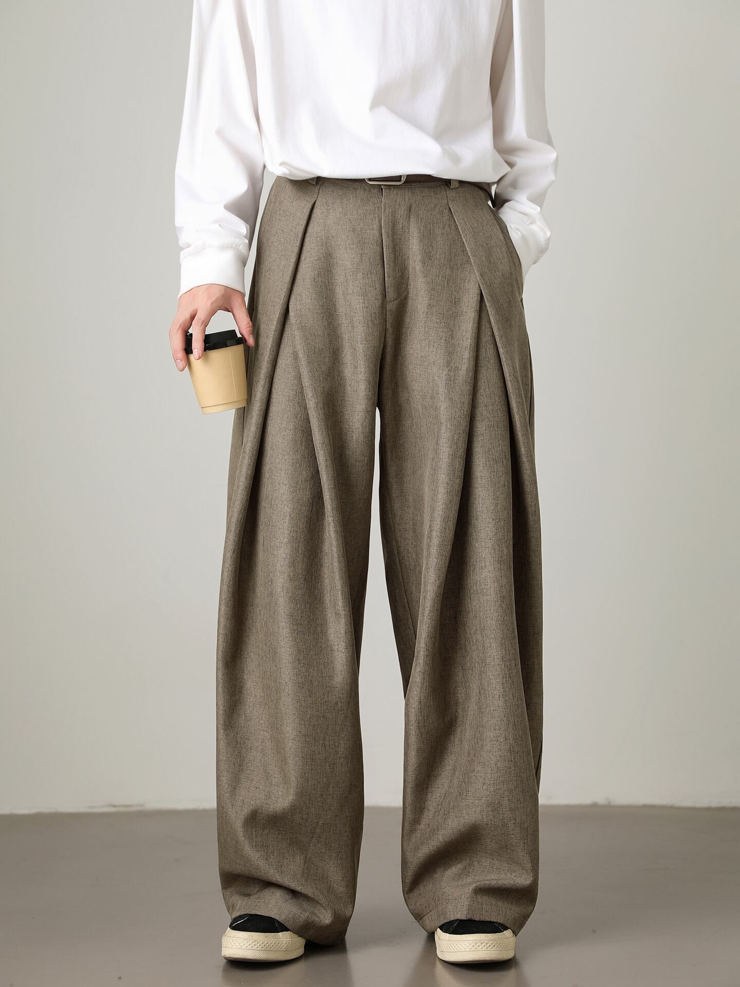 カジュアルパンツテクスチャードブレンドプリーツドレープメンズ秋新作トレンドレトロシルエットゆったり多用途パンツ802