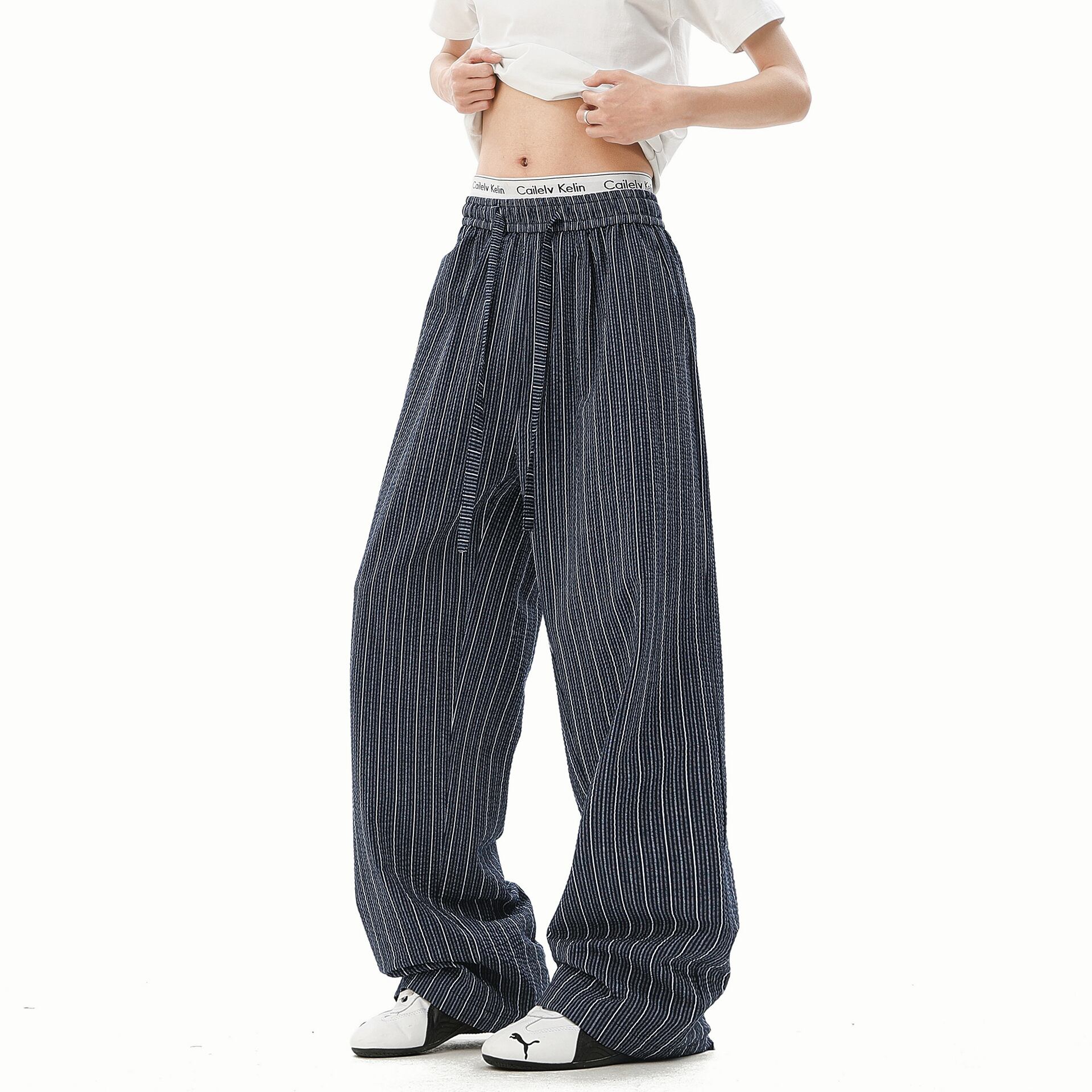・アメリカンレトロスタイルにインスパイアされたユニークなバブルストライプデザインが魅力的なカジュアルパンツです!ワイドなシルエットは、リラックスした着心地を実現し、秋のカジュアルスタイルにぴったりです。