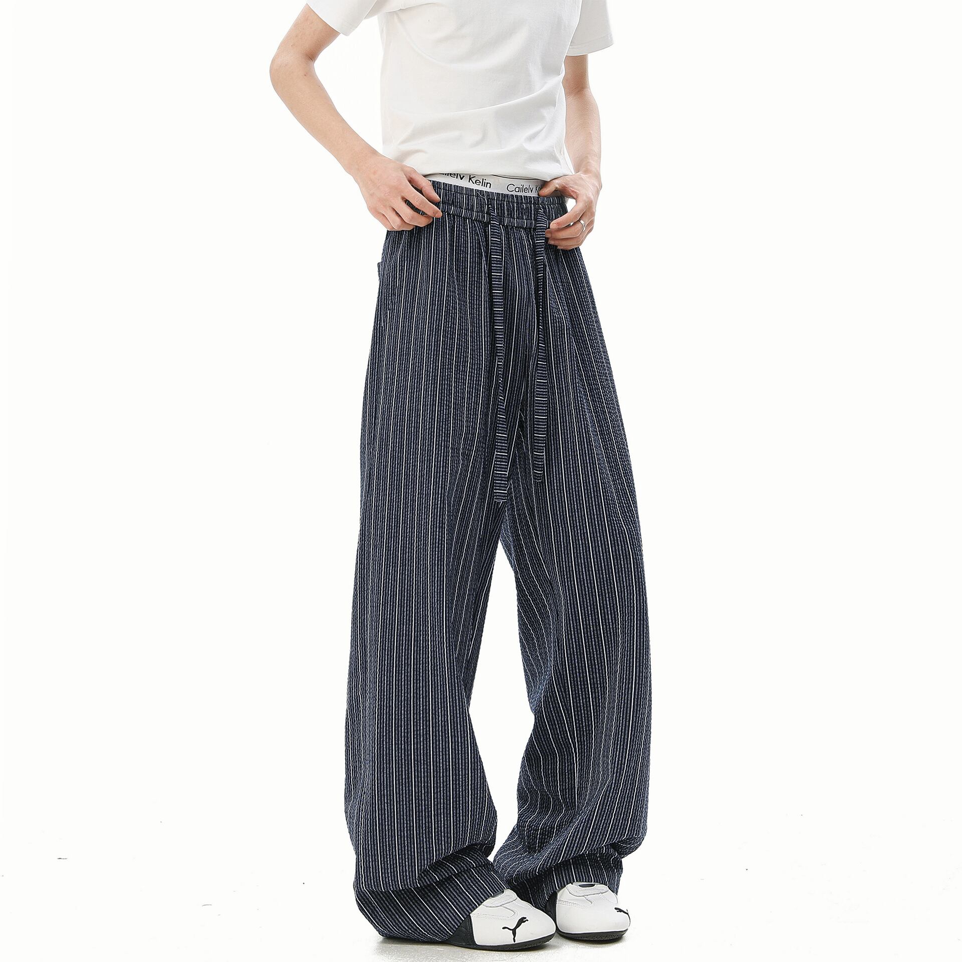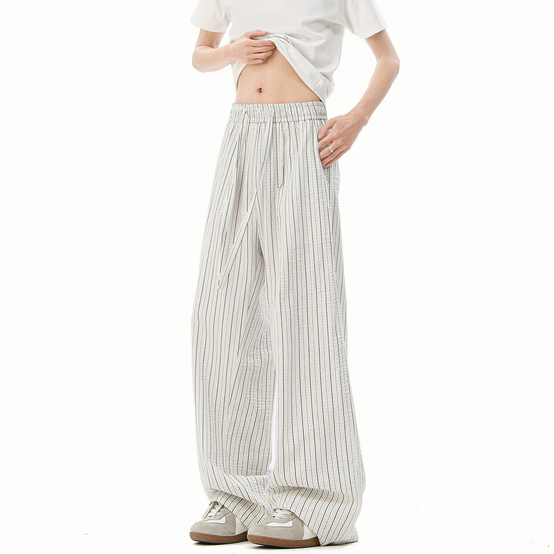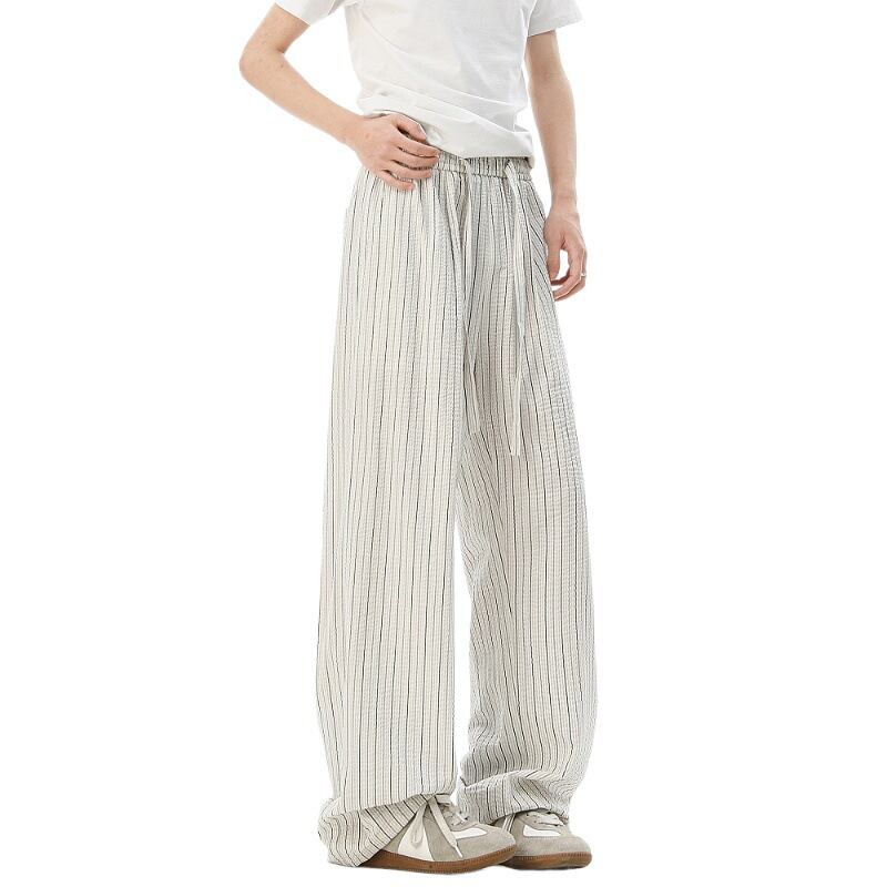 カジュアルパンツ「バブルストライプ」160g綿男性アメリカレトロワイドレギンス 804