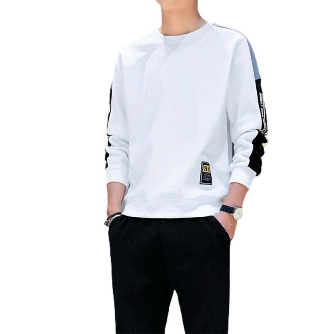 2024春秋新作「メンズスポーツ&レジャースーツユースプルオーバーラウンドネックロングスリーブTシャツパーカーロングパンツツーピースセット833」は、スタイルと機能性を兼ね備えた優れたアイテムです!サイズはMから4XLまで取り揃えており、幅広い体型の方にフィットします。