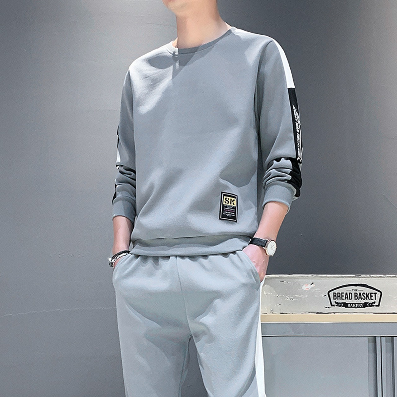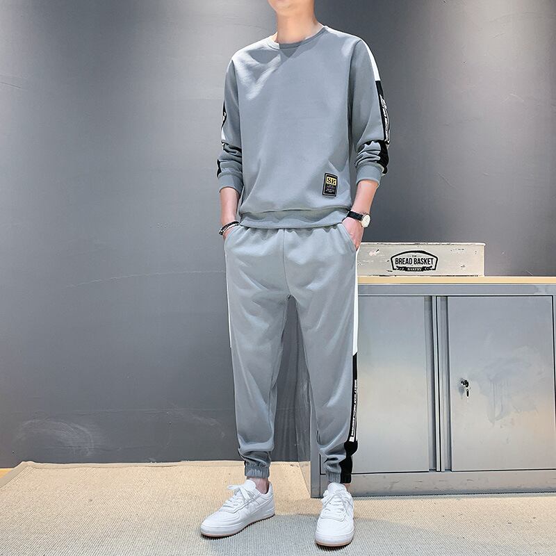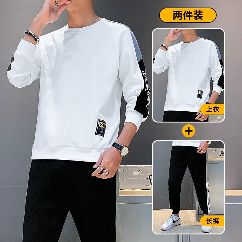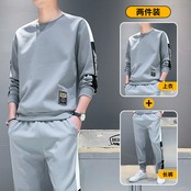 Tシャツパーカーロングパンツ春秋新作メンズスポーツ&レジャースーツユースプルオーバーラウンドネックロングスリーブツーピースセット 833