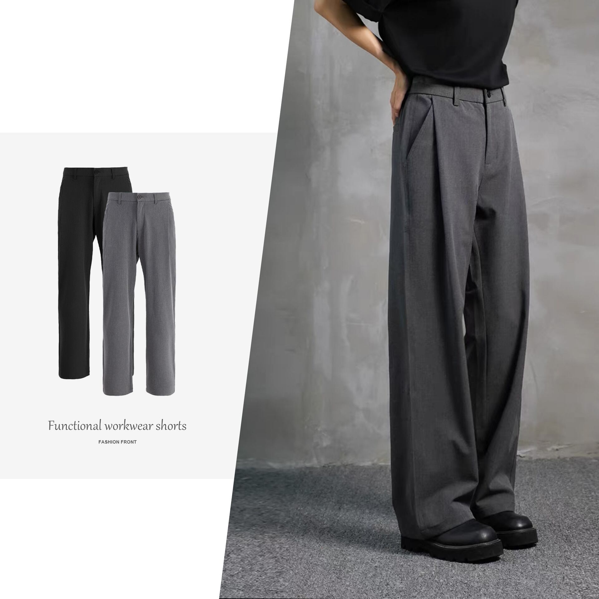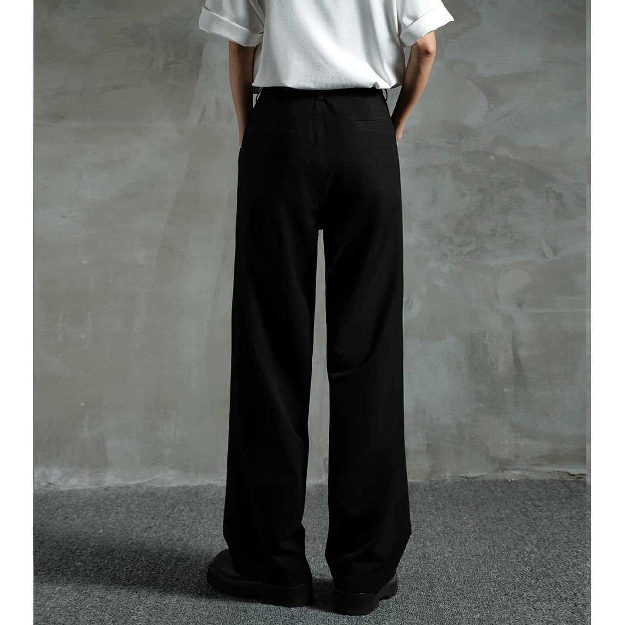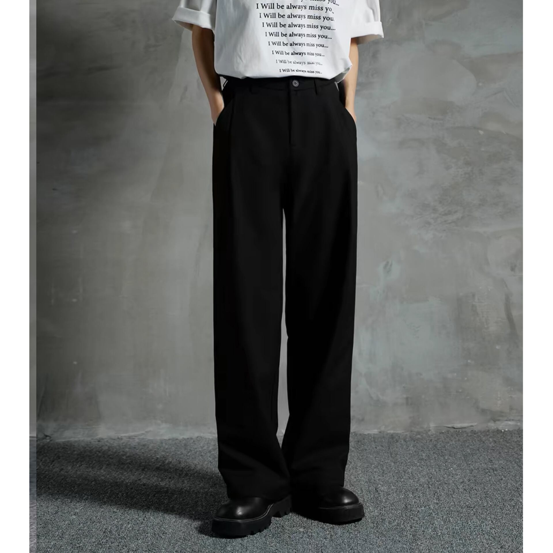 スーツパンツ、黒秋冬ドレープストレートカジュアルパンツ、ルーズパンツ、ワイドレッグスーツパンツ 844