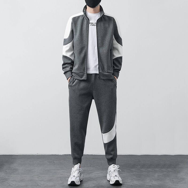 新作スポーツスーツコットンスーツ、メンズ春秋カジュアル、カーディガン、セータージャケット、カフパーカー、ツーピーススーツ 851