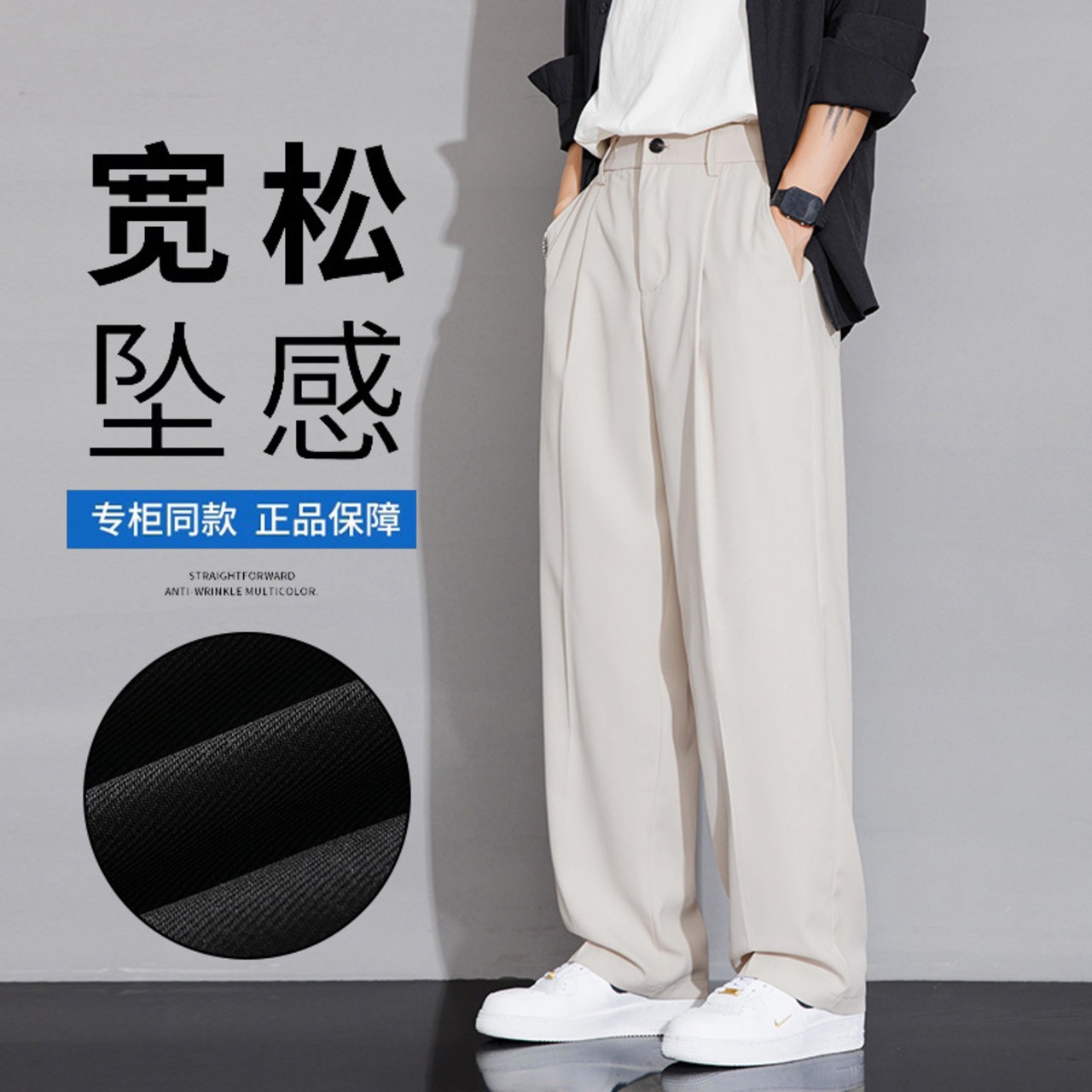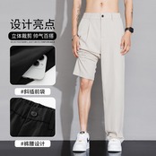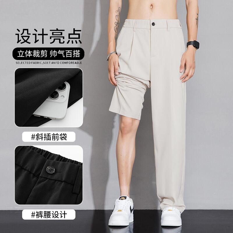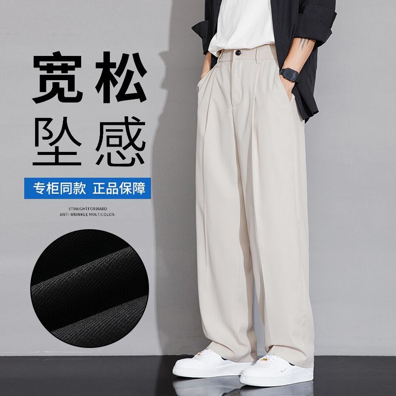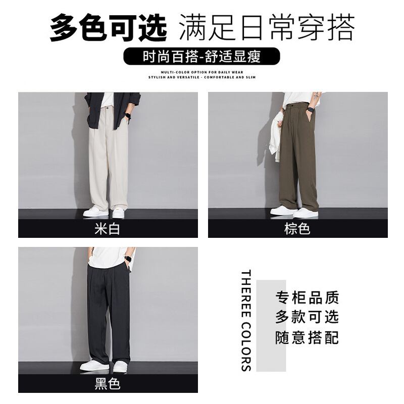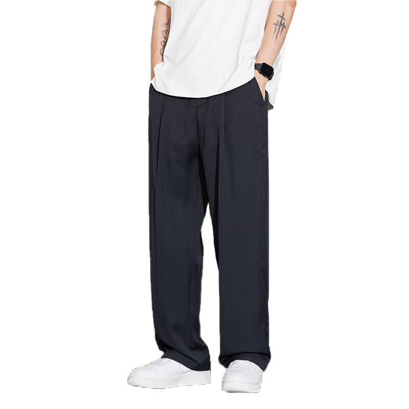 カジュアルパンツアイスシルクパンツ、メンズ秋スタイルルーズドレープストレートスーツパンツ、ワイドレッグ 866