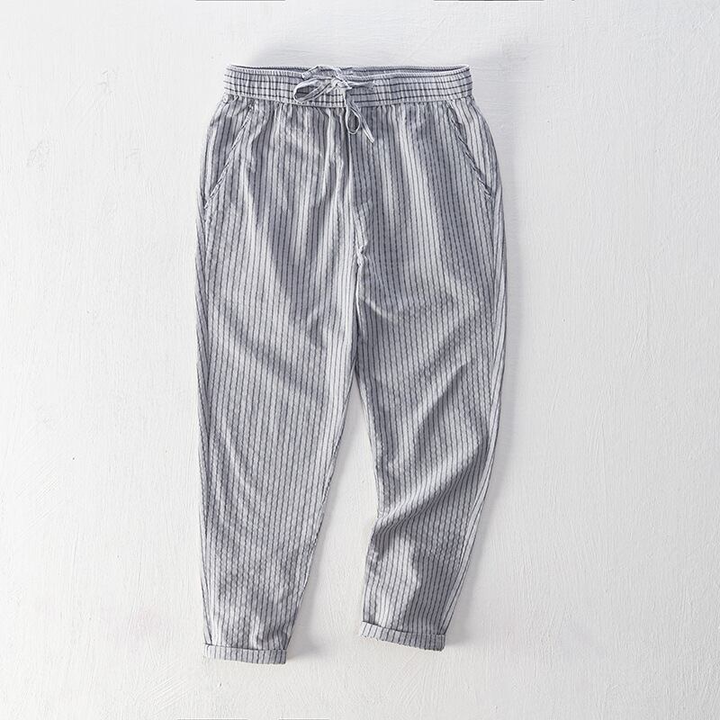 春夏新型シンプルカジュアルパンツ男性灰色ストライプストレートズボン男性 878