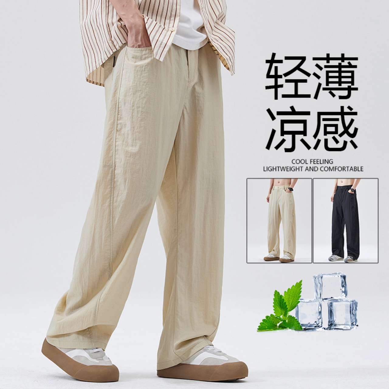 男性ファッション夏薄い速乾ズボンストレートカジュアルズボン広い足 882