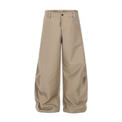 ・リラックス感を与えるゆったりとした広脚シルエットが特徴で、動きやすさとスタイルを両立しています!独自のしわデザインがアクセントとなり、ヒップホップトレンドを意識したカジュアルな装いにぴったりです。