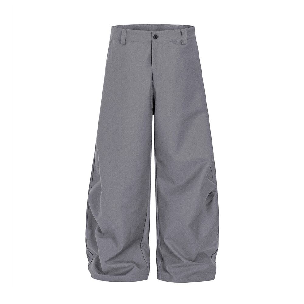 ゆったり広脚純色ズボン男性ヒップホップトレンドしわデザインカジュアルズボン 890