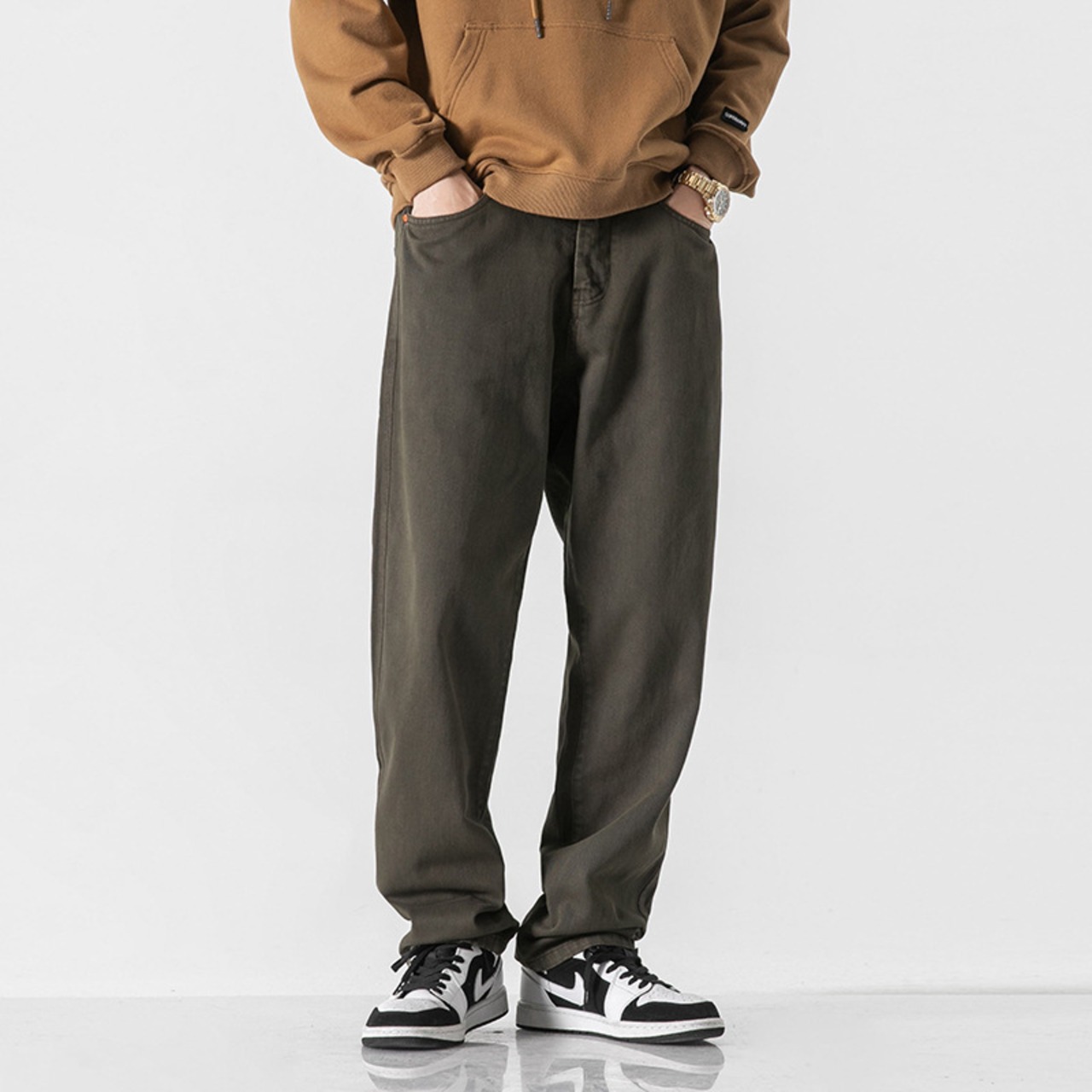夏春シャトル織りワックス染め洗水ラベルストレートカジュアルゆるいジーンズ男性長ズボン 896