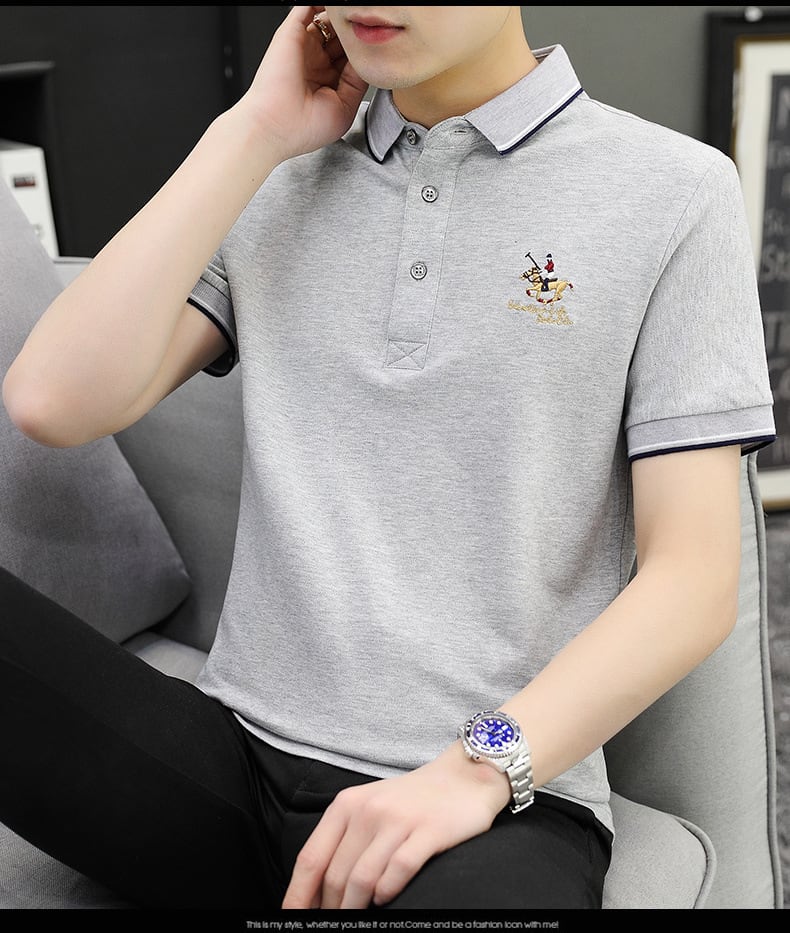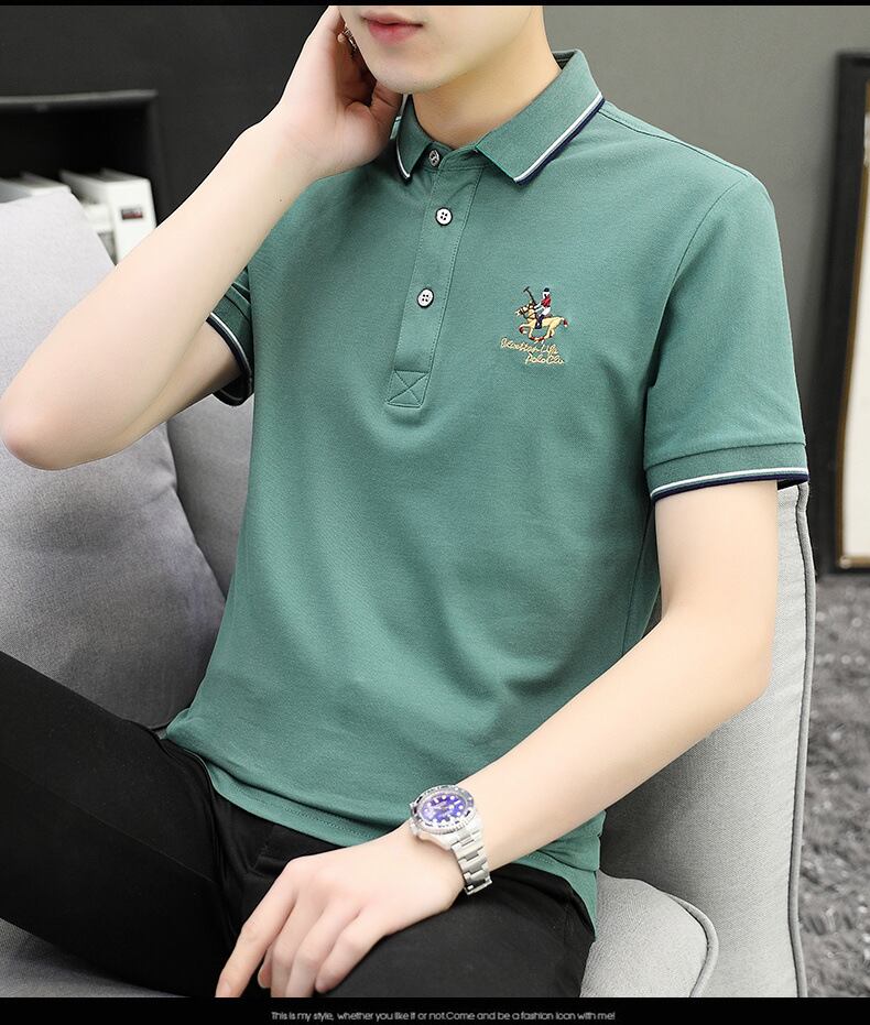 ポロシャツ男夏新作ファッション刺繍折り襟ビジネスカジュアルメンズ純綿メンズ半袖Tシャツ 905
