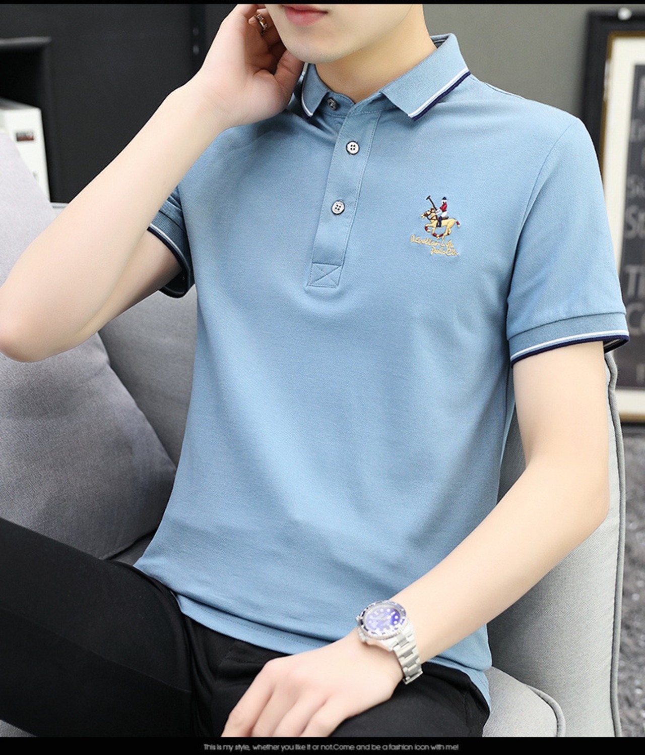 ・折り襟デザインのポロシャツは、スタイリッシュな刺繍が施されており、エレガントかつカジュアルな印象を与えます!見た目だけでなく、快適な着心地を追求したアイテムです。