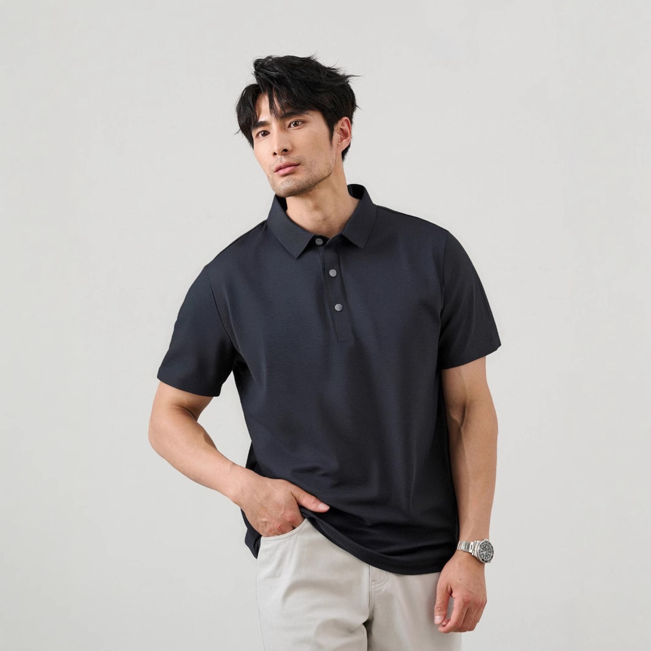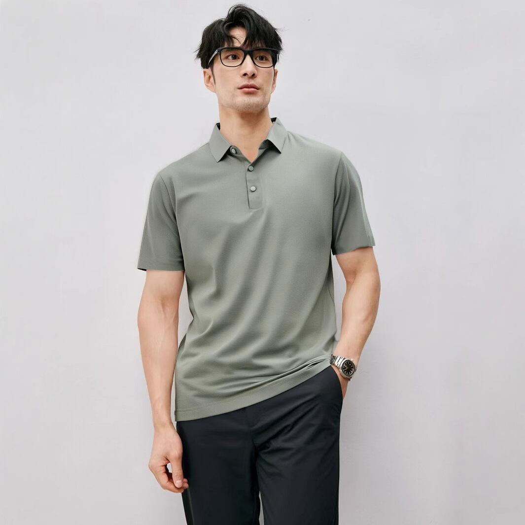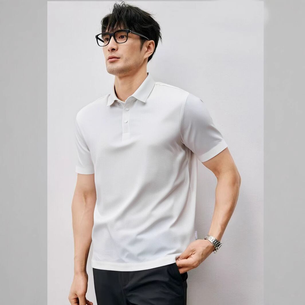 オールドマネースタイル半袖メンズサマーポロシャツ軽くて高級なビジネススリム襟付き半袖メンズTシャツ 917