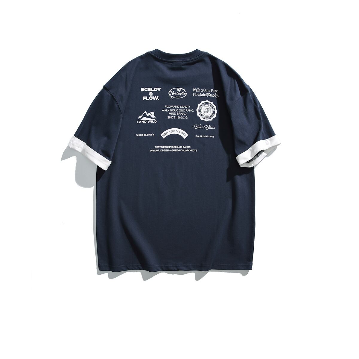夏新品山系丸襟ステッチ半袖通気性吸湿発汗Tシャツ 934
