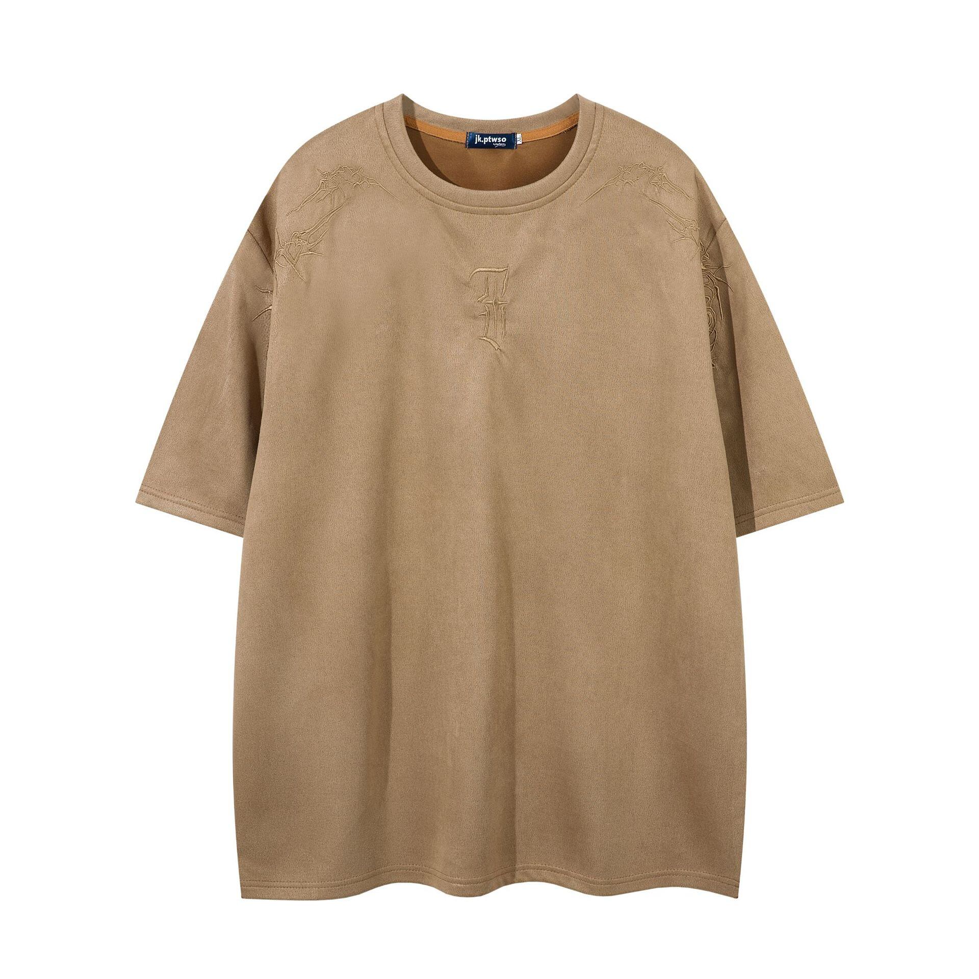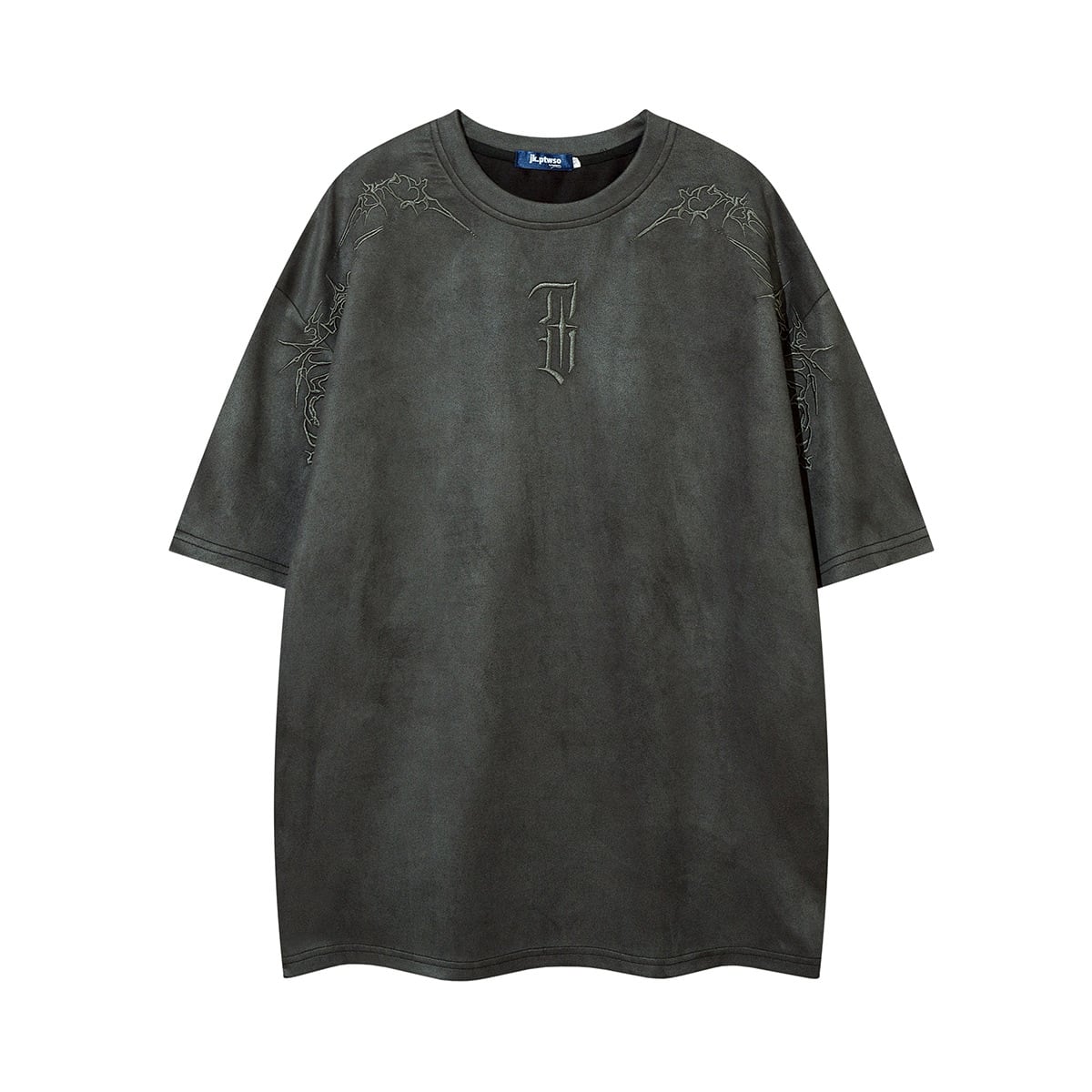 アメリカスエードTシャツ男性いばら刺繍半袖 944