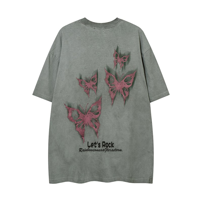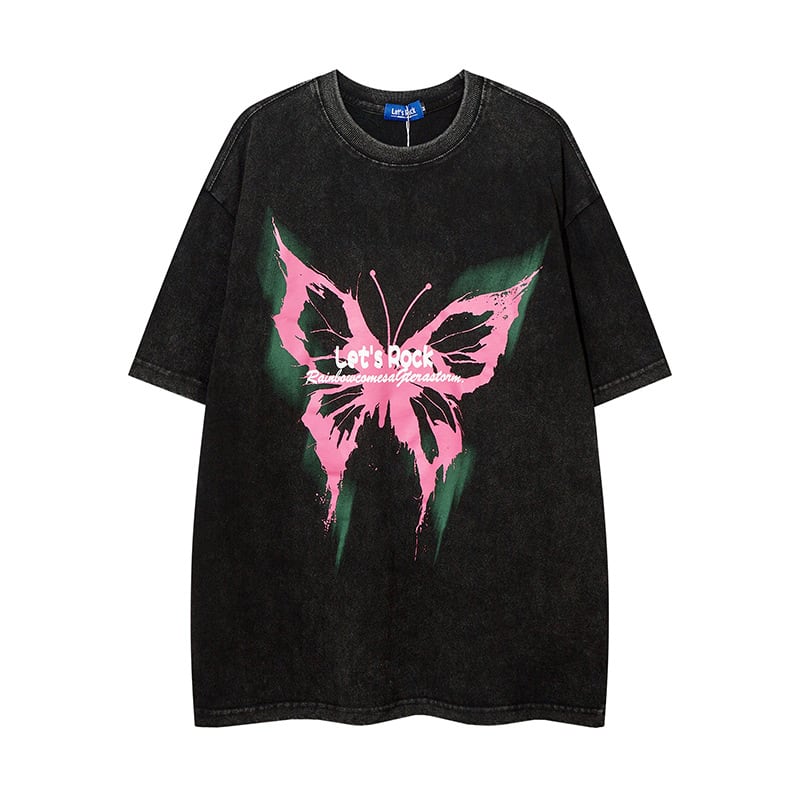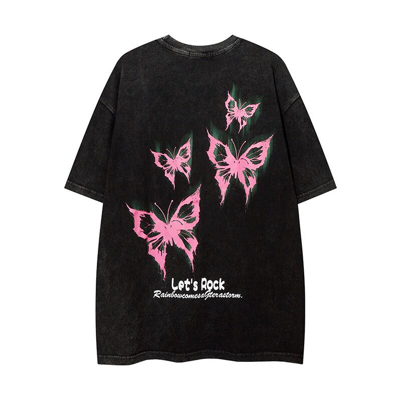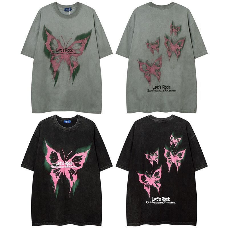 メンズ夏アメリカキャンパス蝶々シック半袖ゆったりTシャツ男女カップルモデル 951