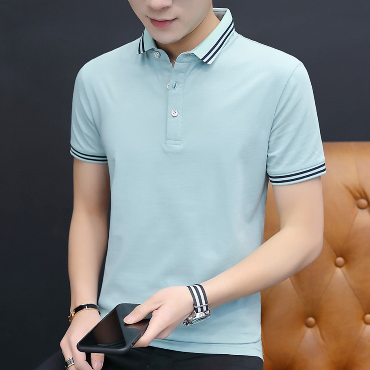 男性ポロシャツ夏薄いファッションビジネスカジュアルTシャツ上着青年ファッション襟 952
