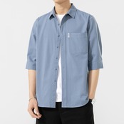 コットン半袖シャツ男性夏新作七分袖水洗いシャツコートカジュアル上着 970