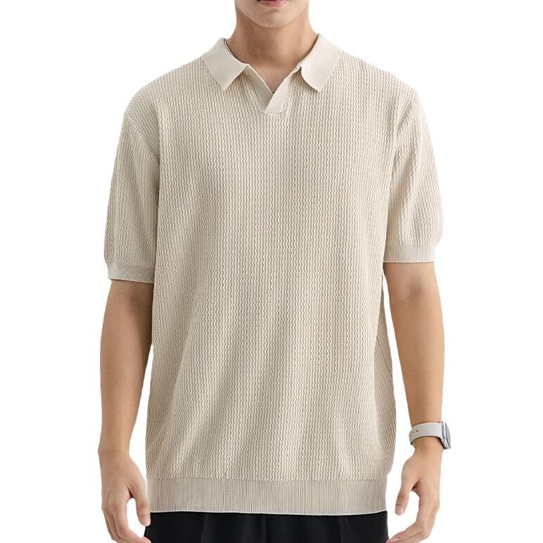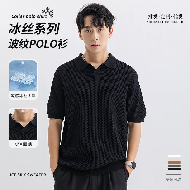 アイスニットポロシャツ高級感リードビジネスカジュアルポール夏メンズ半袖Tシャツメンズ 987
