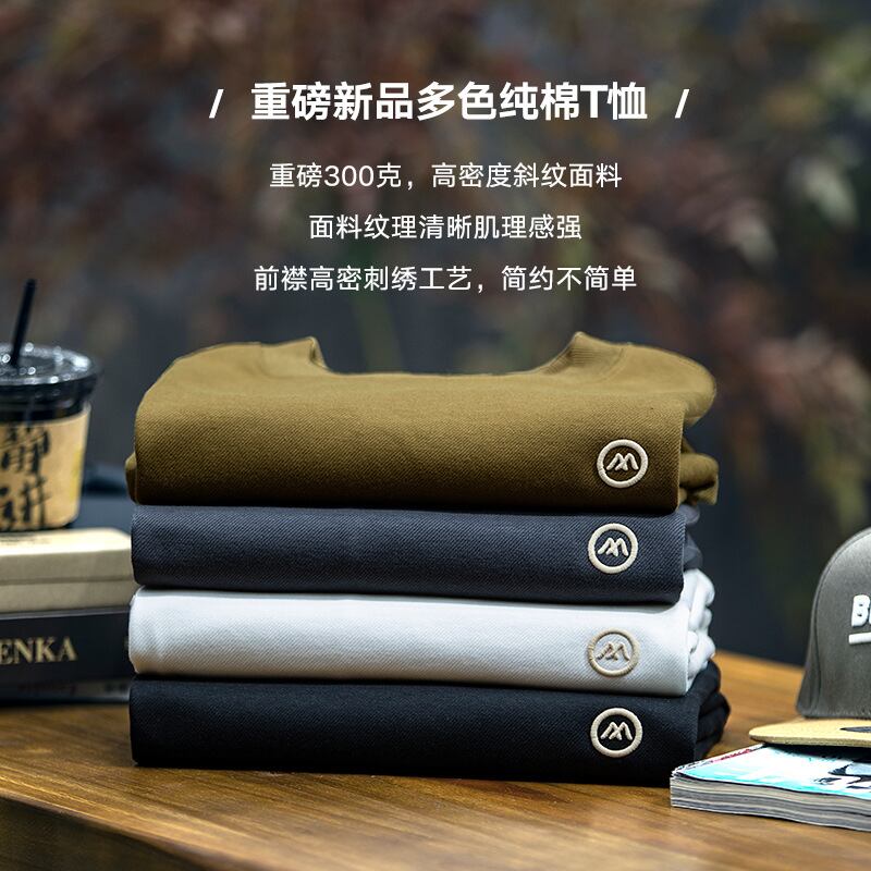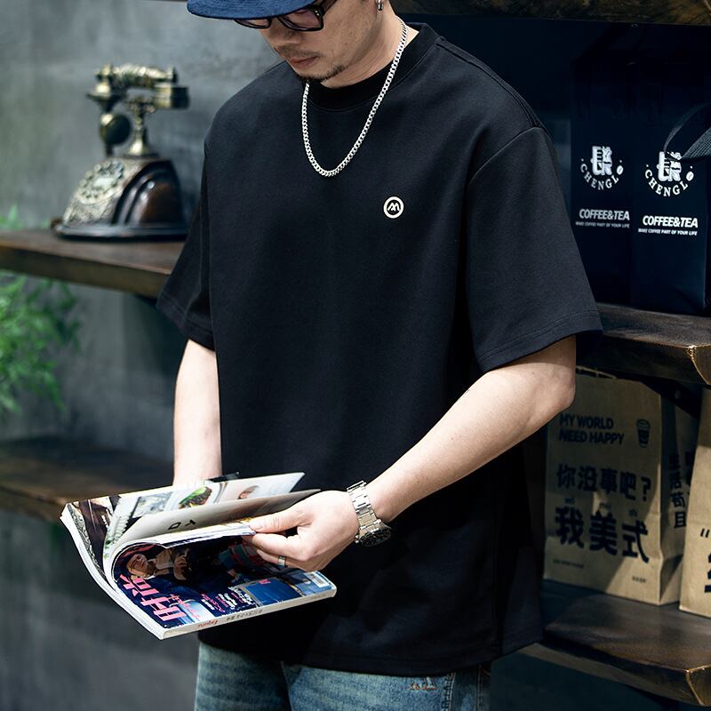 夏の300g重半袖Tシャツ男性刺繍半袖男性ゆるい丸襟 988